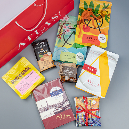 Подарок 22: Кофе, чай, орехи, конфеты в подарочном пакете