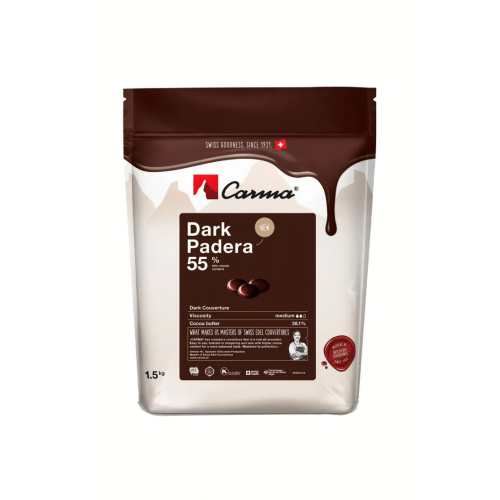 Швейцарский тёмный шоколад Dark Padera 55% имеет выраженные нотки какао, уравновешивающие сладость.