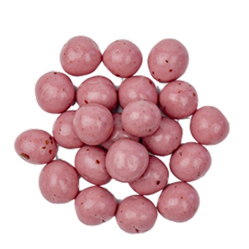 Фундук, сахар, какао масло, цельное сухое молоко, глюкозный сироп, сублимированная малина, глянцеватель, пищевой лак, эмульгатор: соевый лецитин, натуральная ваниль.