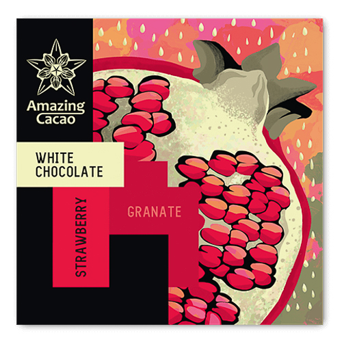 Сладость клубники и терпкость граната соединены в одной плитке белого шоколада – идеальное сочетание, которое вызовет улыбку и подарит хорошее настроение. Уникальная щадящая технология обработки позволяет сохранить все преимущества ингредиентов – антиоксиданты клубники и граната повышают иммунитет и защищают сердце.