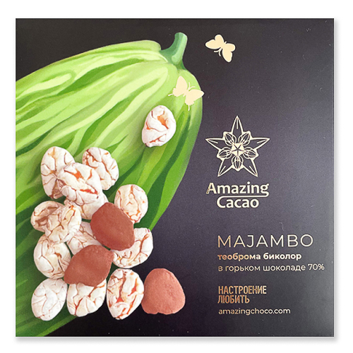 Бобы теоброма биколор Majambo в горьком шоколаде, 100г