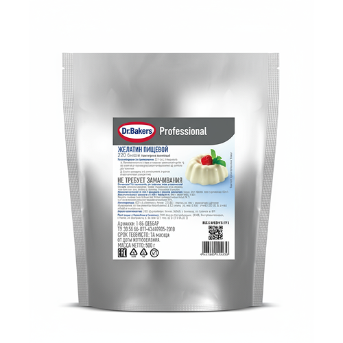 Желатин пищевой Dr. Bakers Professional – высококачественный натуральный загуститель животного происхождения, природный коллаген. Используется как желирующий агент для мясных, рыбных, овощных блюд и разнообразных десертов: желе, мармелада, панна котты, холодных чизкейков, маршмеллоу, муссов, суфле и многих других. Обеспечивает формирование плотной упругой текстуры.